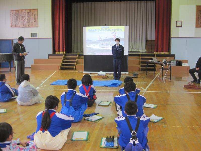 火災を想定した避難訓練を実施しました。石巻東消防署牡鹿支署の方々にお越しいただき、訓練の様子を見ていただきました。