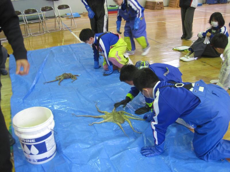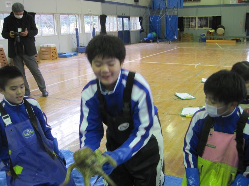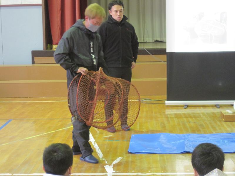 宮城県漁協青年部の方にお越しいただき、漁業に関する出前授業をしていただきました。