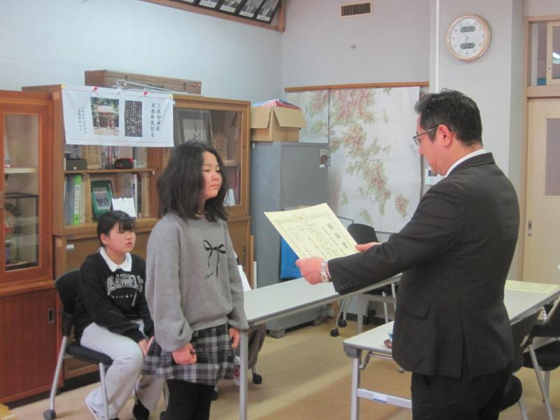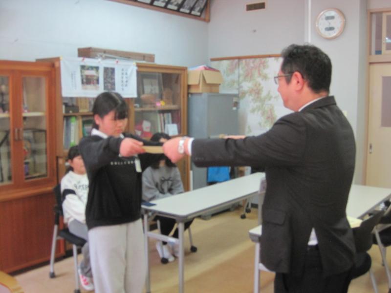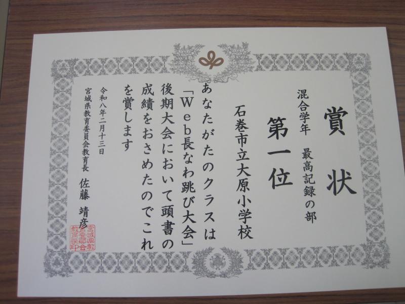 本日、Web長なわとび大会の混合学年の部で最高記録・累計記録が1位となったことから、宮城県教育庁より学校保健体育安全課から表彰のためにご来校くださいました。
