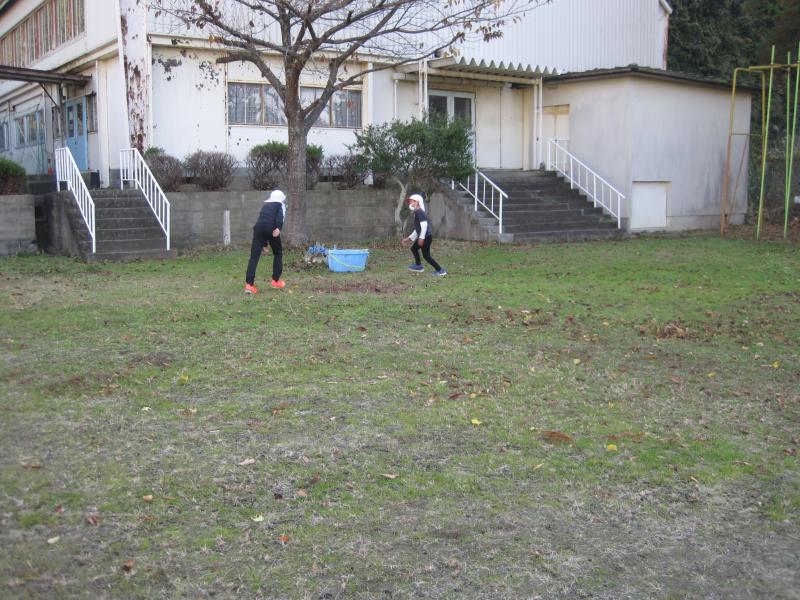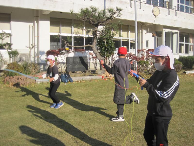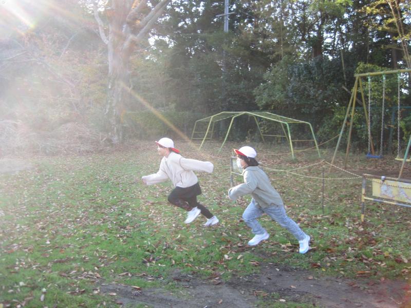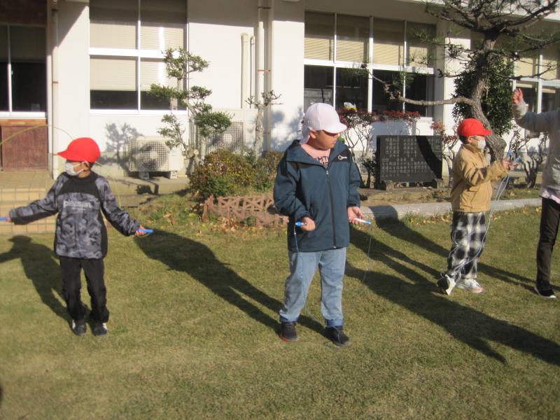 気持ちの良い朝、スポーツタイムで短なわとびと、フリスビーを使ったペアゴルフ?に挑戦しました。