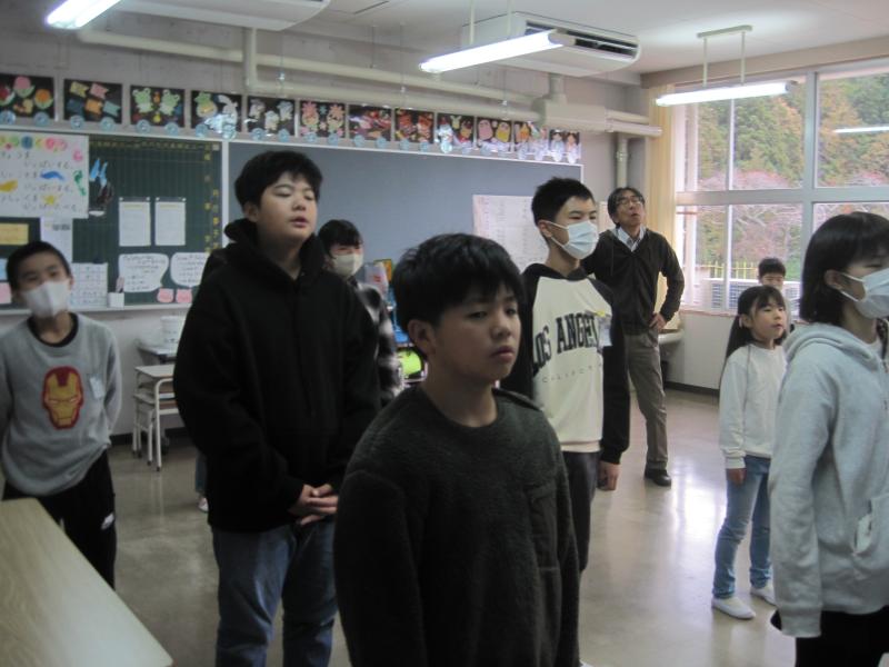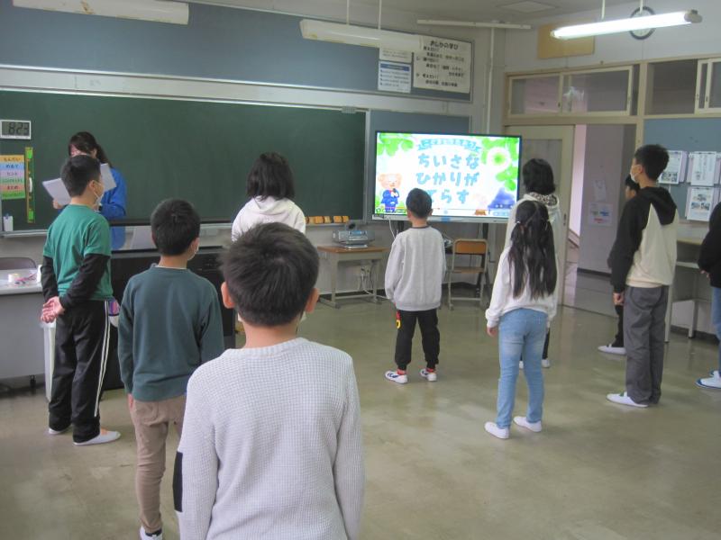 今朝は、月に一度の全校朝の会。今日は、音楽の時間に練習したリコーダー演奏の発表がありました。