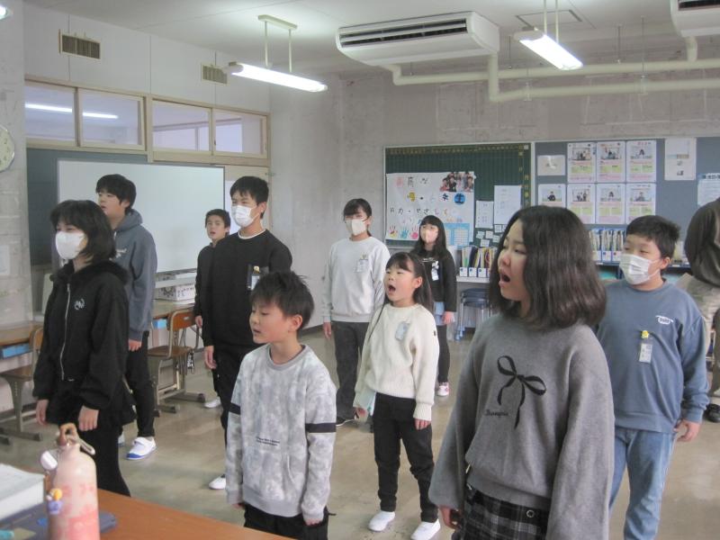 今朝は、歌声タイム。子どもたちの声が、校舎の中で響いていました。
