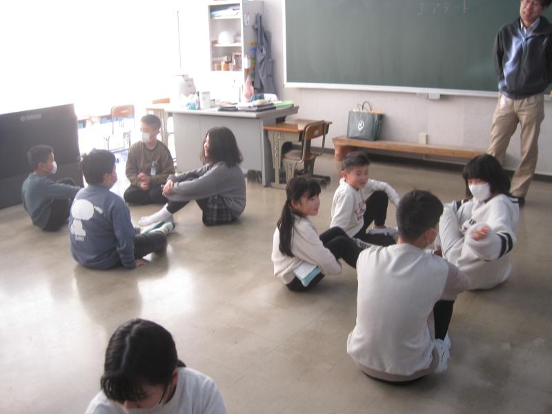 今日は、寄磯小学校の友達も交えて、児童みんなが運動に取り組みました。ゲームを通していろいろな動きに挑戦しながら、友達と協力したり、競ったりして楽しみました。