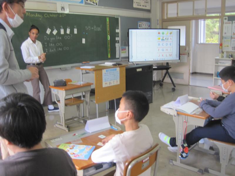 ALTのキンバリー先生は、今日が最終日となりました。全校児童みんなで最後の外国語の学習をしました。