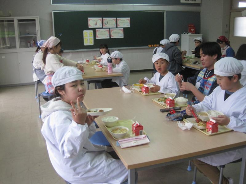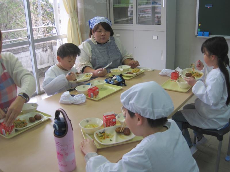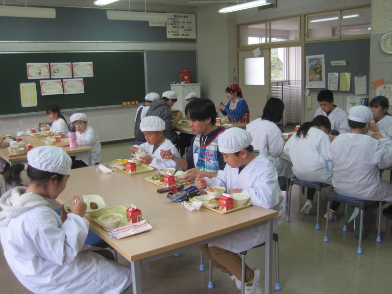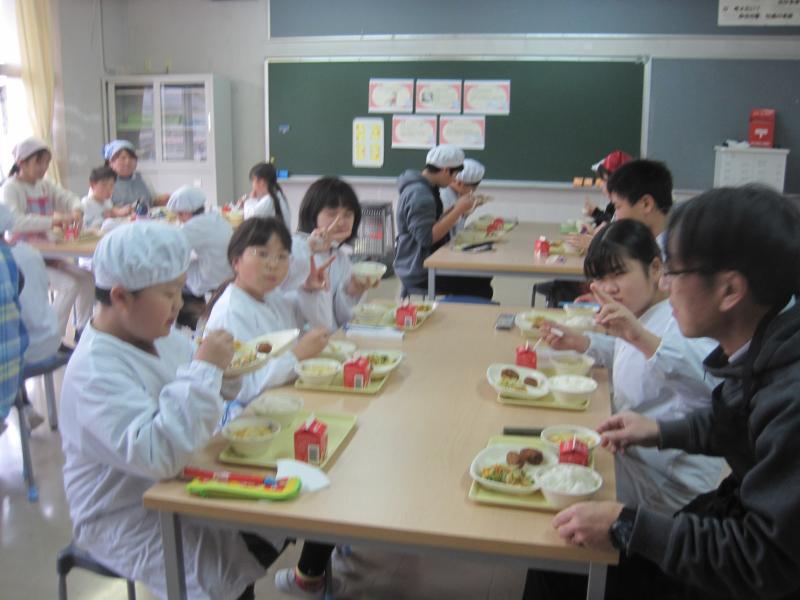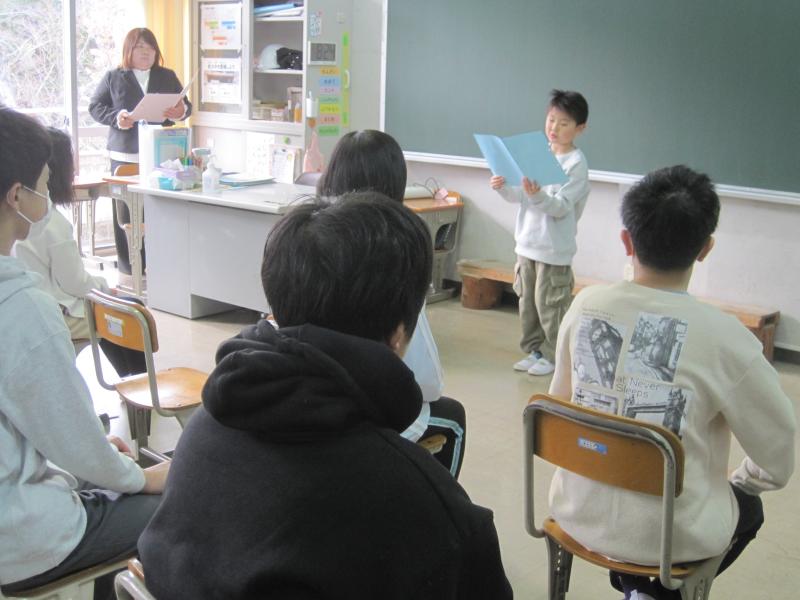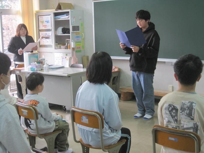 2~3校時は、書きぞめ練習。東松島市から遠藤先生にもお越しいただき、展覧会に出品した作品も見せていただきました。