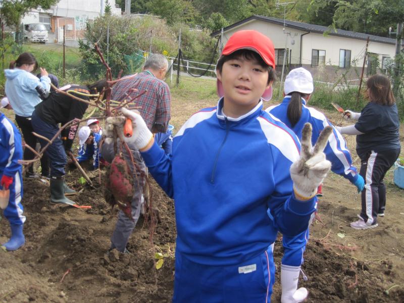 5月に苗を植えてから147日後の10月9日にさつまいもほりを行いました。たくさん収穫できたことに歓声が上がりました。