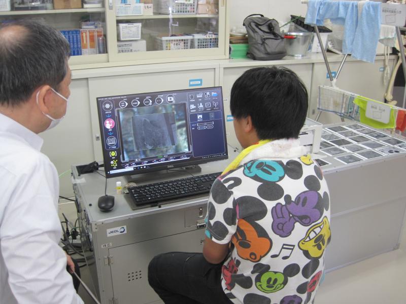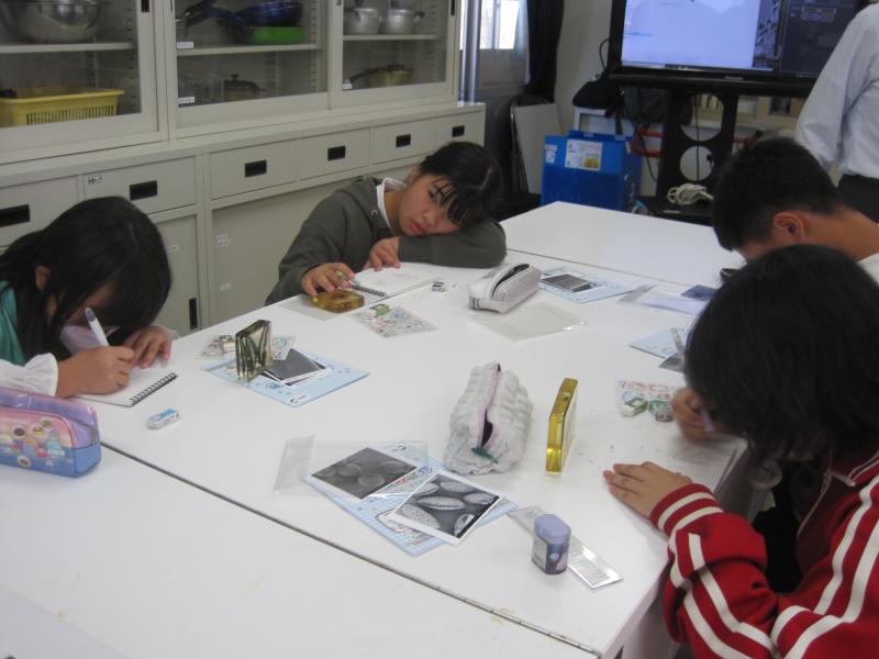 日本電子株式会社様の出前授業がありました。電子顕微鏡で、ミクロの世界をのぞいてみると・・・。いろんな発見があったようです。